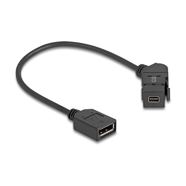 Delock Keystone Modul Mini DisplayPort Einbaubuchse zu DisplayPort Buchse 45° gewinkelt mit 30 cm Kabel 8K 30 Hz schwarz