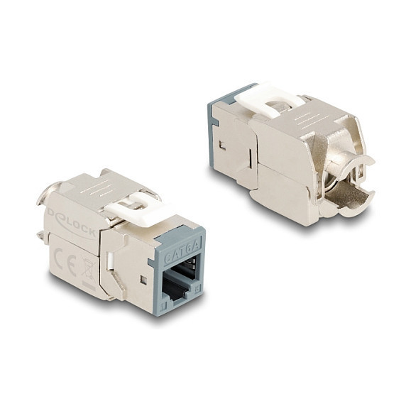 "DeLOCK Keystone Modul RJ45 jack to LSA Cat.6A toolfree grey set 10 pieces. Construction type: Flat, Product colour: Grey, Connector 1: RJ-45. Width: 19.6 mm, Depth: 39.5 mm, Height: 16.2 mm. Quantity per pack: 10 pc(s)"\n"These Keystone modules by Delock can be used to connect network cables and they are suitable for easy snap-in mounting in various holders, such as keystone patch panels, face plates or surface-mount boxes."