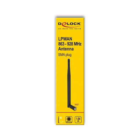 "DeLOCK 12616. Antenna gain level (max): 1.64 dBi, Frequency band: 0.863 - 0.928 GHz, Impedance: 50 Ω. Antenna type: Omni-directional antenna, Antenna connector type: SMA, Connector gender: Male. Depth: 10 mm, Height: 170 mm"\n"This antenna by Delock allows the usage of the 863 MHz - 928 MHz bands indoors and outdoors."