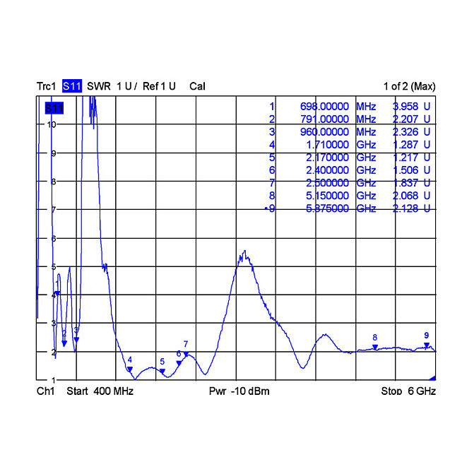 "DeLOCK 12430. Antenna gain level (max): 4 dBi, Frequency band: 0.698 - 0.791 / 0.824 - 0.960 / 1.710 - 2.170 / 2.400 - 2.500 / 5.150 - 5.875 GHz, Impedance: 50 Ω. Antenna type: Omni-directional antenna, Antenna connector type: SMA, Voltage Standing Wave Ratio (VSWR): 2.5:1 - 5.0:1. Width: 39.8 mm, Depth: 156.2 mm, Height: 13.5 mm. Package type: Polybag. Quantity per pack: 1 pc(s)"\n"This LTE antenna can be installed indoors and can be used for reception of different LTE bands. It is completely Bluetooth, UMTS, GSM, WLAN dual band and ZigBee compatible."