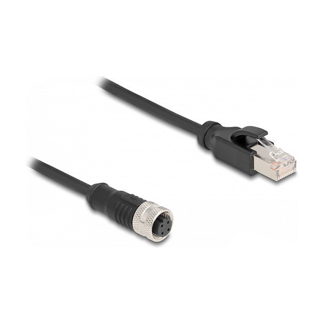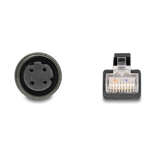 "DeLOCK M12 Adapter Cable D-coded 4 pin female to RJ45 male 50 cm. Cable length: 0.5 m"\n"This industrial Ethernet cable by Delock can be used to connect various components with M12 connectors, e.g. for machine control or automation."