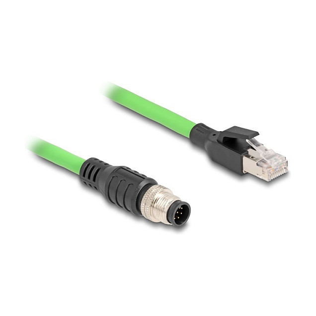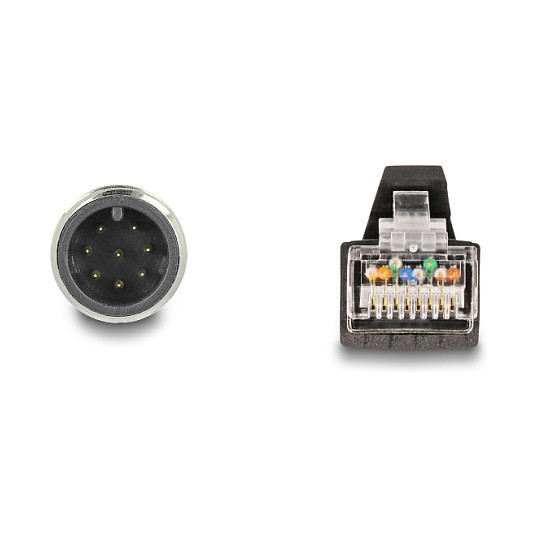 "DeLOCK M12 Cable A-coded 8 pin male to RJ45 male PUR (TPU) 2 m. Cable length: 2 m, Certification: UL 94"\n"This industrial Ethernet cable by Delock can be used to connect various components with M12 connectors, e.g. for machine control or automation.