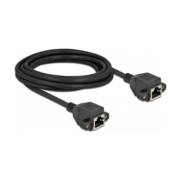 "DeLOCK Network Extension Cable S/FTP RJ45 jack to RJ45 jack Cat.6A 3 m black. Cable length: 3 m, Cable standard: Cat6a, Cable shielding: S/FTP (S-STP), Connector 1: RJ-45, Connector 2: RJ-45, Product colour: Black"\n"This network cable by Delock can be used to extend and connect various devices. The screwable RJ45 jack can be attached, for e.g., to a slot bracket or a housing with a suitable cut-out."