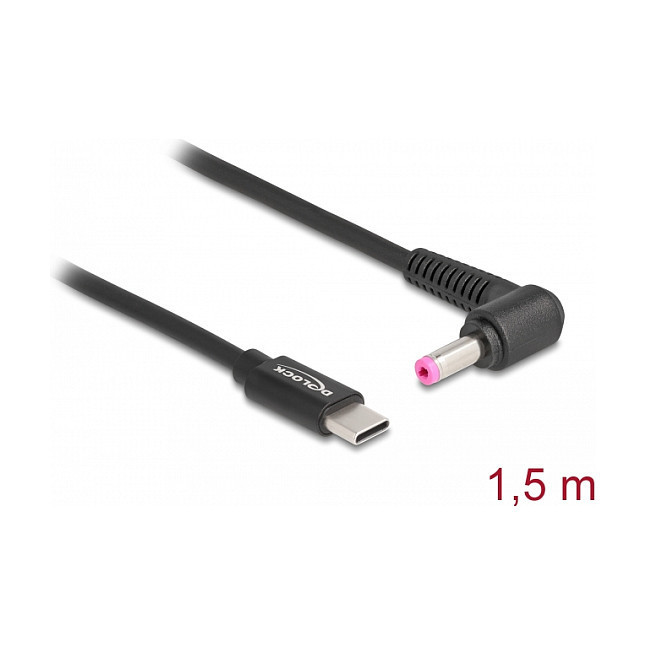 "DeLOCK Laptop Charging Cable USB Type-C male to HP 4.8 x 1.7 mm male. Cable length: 1.5 m, Connector 1: USB C. Input voltage: 20 V"\n"With this cable by Delock you can charge your laptop at a USB Type-C™ socket."