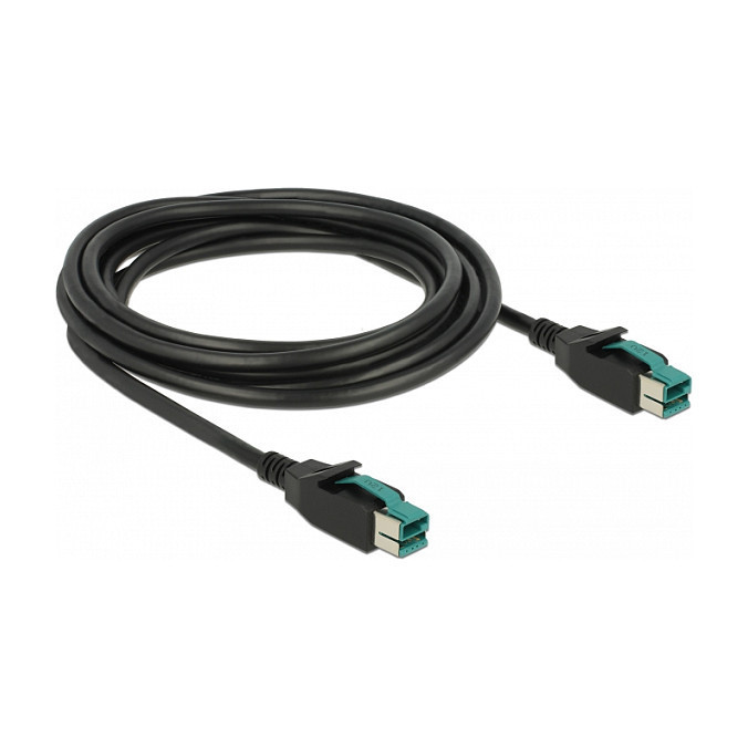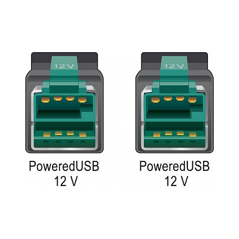 "DeLOCK 85494. Cable length: 3 m, Connector 1: PoweredUSB, Connector 2: PoweredUSB"\n"This PoweredUSB cable by Delock can be used to connect a device with PoweredUSB 12 V port to a PC or hub with PoweredUSB 12 V port. It is suitable for connecting various POS devices such as printers and terminals, e.g. by Epson, Honeywell or IBM. The cable is used both for data transmission and for power supply of the connected device."