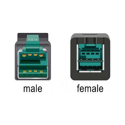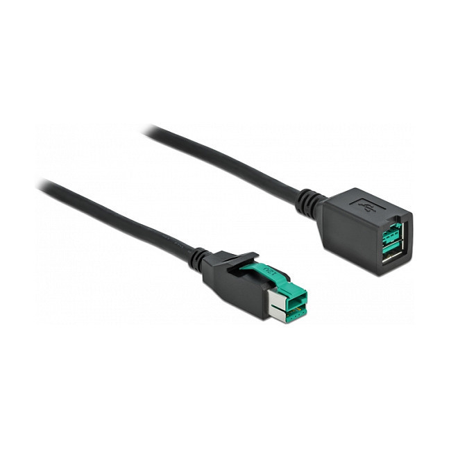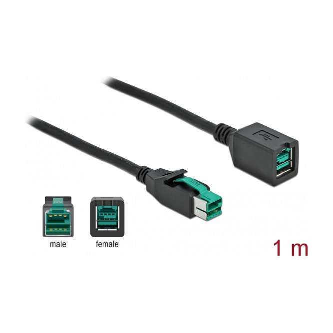 "DeLOCK PoweredUSB extension cable 12 V 1 m. Cable length: 1 m. Product colour: Black, Magnetically shielded"\n"This cable by Delock allows the extension of a PoweredUSB connection and can be used to connect various devices. The cable is used both for data transmission and for power supply of the connected device."