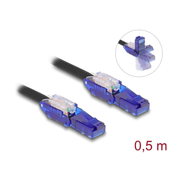 Delock RJ45 Netzwerkkabel Cat.6 UTP mit 180° winkelbaren Steckern schwarz 0,5 m