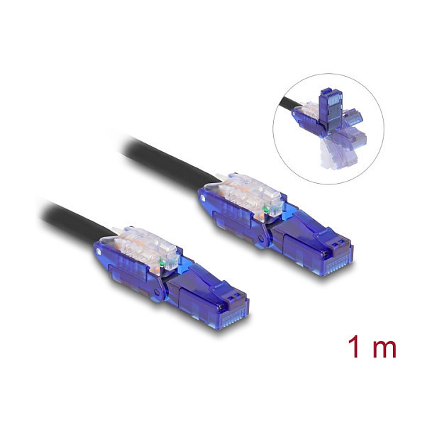 Delock RJ45 Netzwerkkabel Cat.6 UTP mit 180° winkelbaren Steckern schwarz 1 m