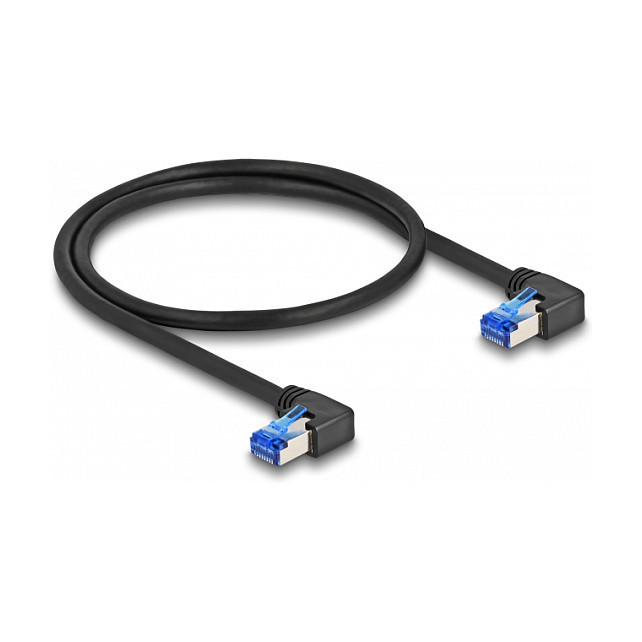 "DeLOCK RJ45 Network Cable Cat.6A S/FTP right angled 2 m black. Cable length: 2 m, Cable standard: Cat6a, Cable shielding: S/FTP (S-STP), Connector 1: RJ-45, Connector 2: RJ-45, Product colour: Black"\n"This network cable by Delock can be used to connect different networking devices, e.g. a NIC to a switch or a patch panel.