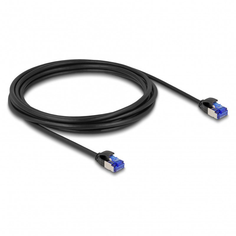 "DeLOCK RJ45 Network Cable Cat.6A S/FTP Slim 3 m black. Cable length: 3 m, Cable standard: Cat6a, Cable shielding: F/UTP (FTP), Connector 1: RJ-45, Connector 2: RJ-45, Product colour: Black"\n"This network cable by Delock can be used to connect different networking devices, e.g. a NIC to a switch or a patch panel.