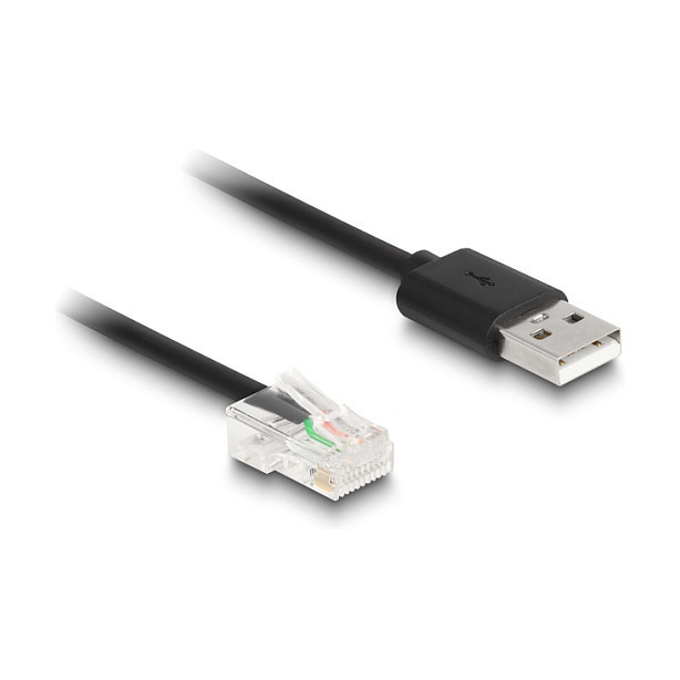 "DeLOCK RJ50 to USB 2.0 Type-A Barcode Scanner Coiled Cable 2 m. Product type: USB cable, Product colour: Black, Connector 1: USB Type-A. Quantity per pack: 1 pc(s), Package type: Polybag"\n"This cable by Delock can be used, for example, to connect a barcode scanner with RJ50 socket to the system.