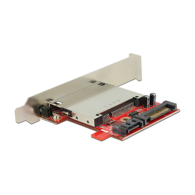 "DeLOCK 91495. Compatible memory cards: CFast, CFast 2.0, Product colour: Black, Red, Silver. Interface: SATA. Package type: Box"\n"This Card Reader can be installed into a PC slot of a PC and will be connected to a free SATA port of the motherboard. The CFast card works as additional memory as well as a hard drive for an operating system which is also bootable."