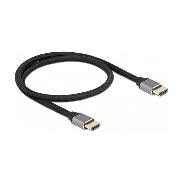 "DeLOCK Ultra High Speed HDMI Cable 48 Gbps 8K 60 Hz grey 0.5 m certified. Cable length: 0.5 m, Connector 1: HDMI Type A (Standard), Connector 1 gender: Male, Connector 2: HDMI Type A (Standard), Connector 2 gender: Male, Connector contacts plating: Gold, 3D, Data transfer rate: 48 Gbit/s, Audio Return Channel (ARC), Product colour: Grey"\n"Description