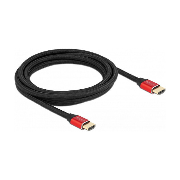 "DeLOCK Ultra High Speed HDMI Cable 48 Gbps 8K 60 Hz red 3 m certified. Cable length: 3 m, Connector 1: HDMI Type A (Standard), Connector 1 gender: Male, Connector 2: HDMI Type A (Standard), Connector 2 gender: Male, Connector contacts plating: Gold, 3D, Data transfer rate: 48 Gbit/s, Audio Return Channel (ARC), Product colour: Black, Red"\n"This high-quality Ultra High Speed HDMI cable by Delock can be used to connect devices with an HDMI interface, such as televisions, Blu-ray players, monitors or projectors. By supporting a maximum bandwidth of 48 Gbps, content can be displayed in 8K Ultra HD (7680 x 4320 @ 60 Hz) resolution.