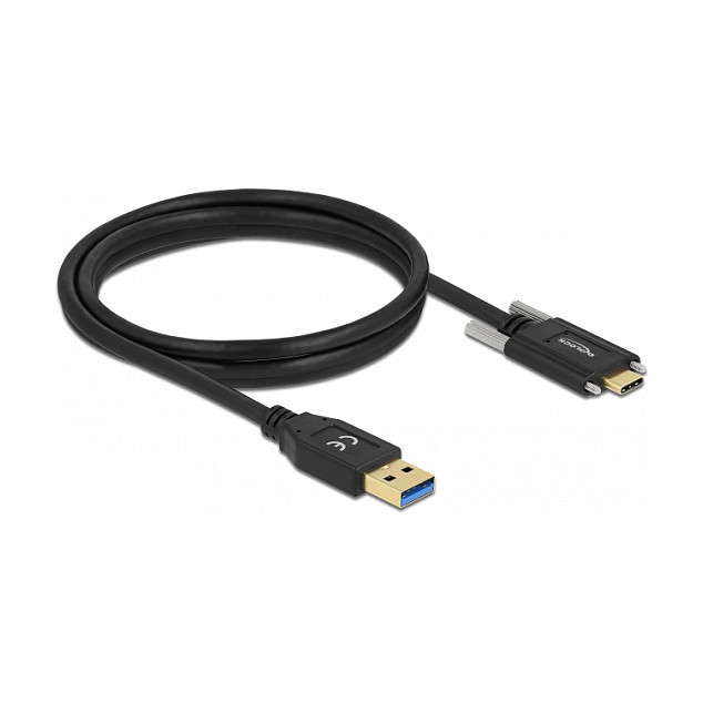 "DeLOCK SuperSpeed USB (USB 3.2 Gen 2) Cable Type-A male to USB Type-C male with screws on the sides 1.5 m. Cable length: 1.5 m. Connector 1: USB A, Connector 2: USB C, USB version: USB 3.2 Gen 2 (3.1 Gen 2), Maximum data transfer rate: 10 Gbit/s, Product colour: Black"\n"This USB cable by Delock allows the connection between devices with a USB Type-C™ connector and a PC or laptop with a free USB port. The screws of the USB Type-C™ connector secure the connection and prevent accidental unplugging of the cable."