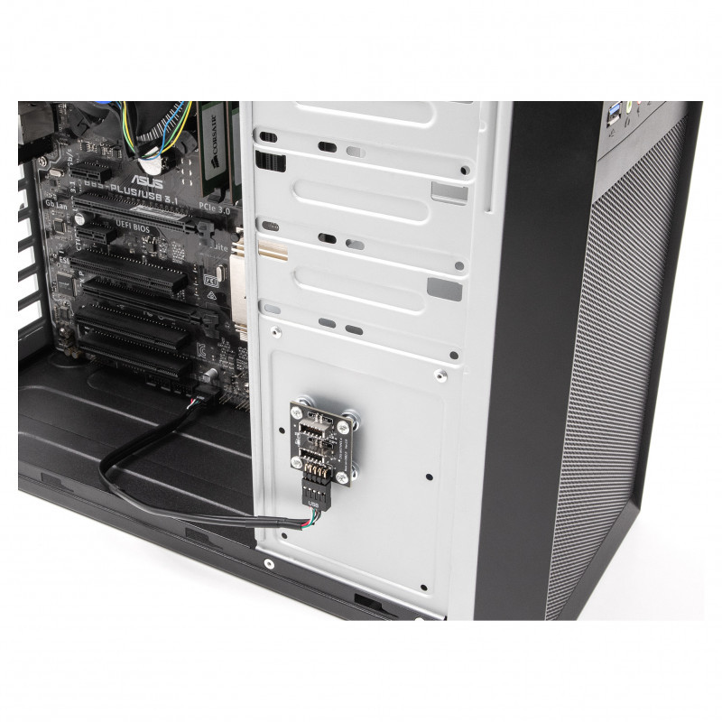 The adapter has four magnetic screw feet that allow the adapter to be attached inside a computer case without drilling holes. The included USB cable, with a length of approx. 30 cm, offers flexible space inside the housing for this purpose."