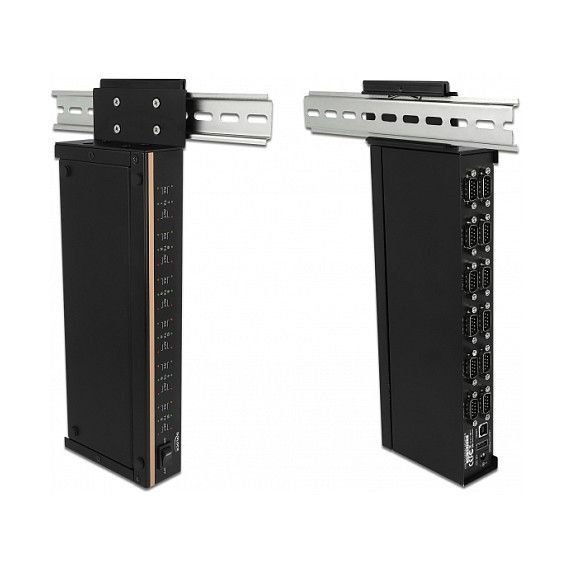 "DeLOCK 64070. Host interface: USB 2.0, Hub interfaces: RS-232, USB 2.0. Data transfer rate: 0.4608 Mbit/s, Product colour: Black, Housing material: Metal. Input voltage: 100 - 240 V, Input current: 0.2 A, AC input frequency: 50 - 60 Hz. Windows operating systems supported: Windows 10, Windows 7, Windows 8.1. Width: 102 mm, Depth: 268 mm, Height: 40 mm"\n"This compact RS-232 hub with High Speed USB 2.0 to 12 x RS-232 serial by Delock supports connections for printers, controllers, measuring devices etc. Up to four of these hubs can be cascaded (series connection), thus up to 48 RS-232 ports are provided on one USB 2.0 port. The LEDs on each single port indicate the current RS-232 status. A Windows application supports centralized control of the serial COM ports. The hub is suitable as a desktop device and for wall or DIN rail mounting."