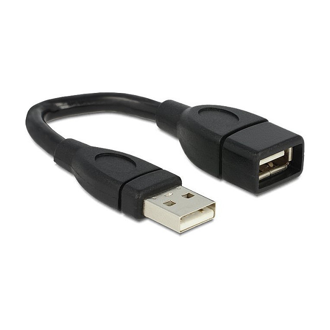 "DeLOCK 15cm USB 2.0. Cable length: 0.15 m. Connector 1: USB A, Connector 2: USB A, USB version: USB 2.0, Connector gender: Male/Female, Product colour: Black"\n"This cable enables you to extend your USB 2.0 connection by ca. 15 cm and can be used to connect various devices. Because of a built-in wire the ShapeCable can be bent into any form and then maintains its shape.