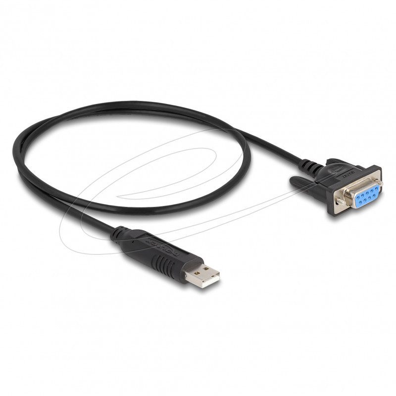Delock USB 2.0 zu Seriell RS-232 Adapter Sub-D 9 Buchse mit Schrauben kompaktem Steckergehäuse 50 cm FTDI