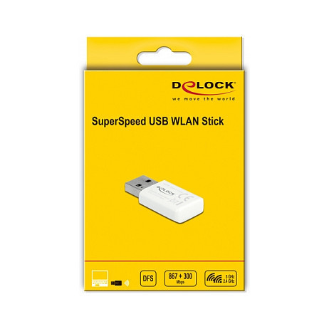 "DeLOCK USB 3.0 Dual Band WLAN ac/a/b/g/n Micro Stick 867 + 300 Mbps. Connectivity technology: Wireless, Host interface: USB, Interface: WLAN. Maximum data transfer rate: 5000 Mbit/s. Product colour: White"\n"This wireless LAN USB Micro stick by Delock can be connected to a computer for the connection to a WLAN network. The WLAN stick can be connected to an AccessPoint or WLAN-router in a 2.4 GHz and 5 GHz band. Furthermore it enables an ad-hoc connection to a second computer."