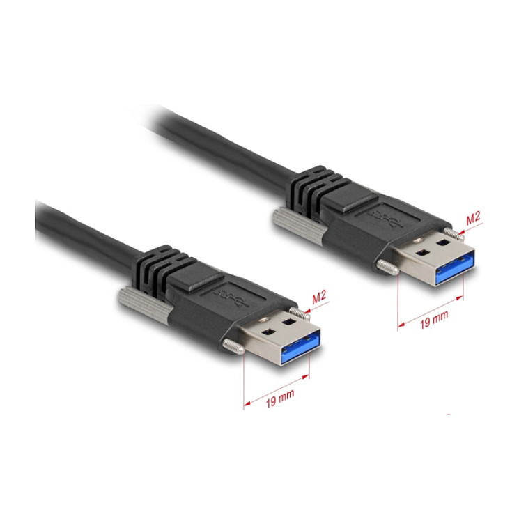 Delock USB 5 Gbps Kabel Typ-A Stecker zu Typ-A Stecker mit Schraubenabstand 19 mm 1 m schwarz