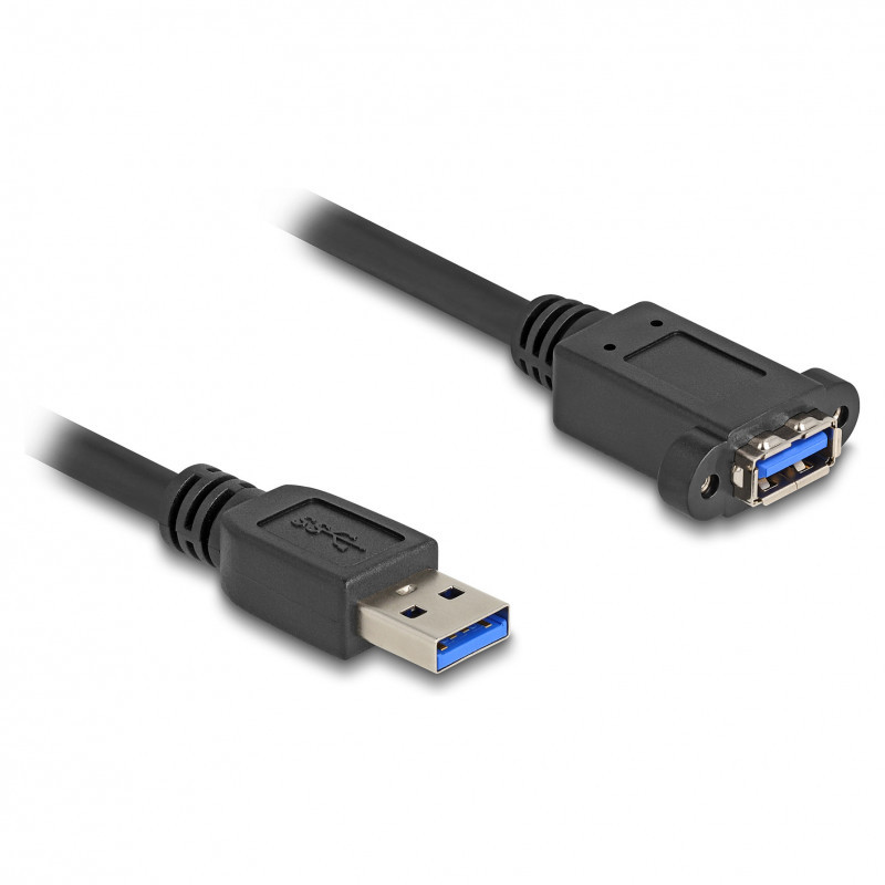 "DeLOCK USB 5 Gbps Cable USB Type-A male to USB Type-A female for installation 1 m black. Cable length: 1 m. Connector 1: USB A, Connector 2: USB A, USB version: USB 3.2 Gen 1 (3.1 Gen 1), Maximum data transfer rate: 5 Gbit/s, Product colour: Black"\n"This cable by Delock can be used to connect various devices. The USB-B female port can be attached with two screws, e.g. to a slot bracket, a cable duct or an enclosure with the corresponding opening. In this way, it is possible to install a USB connector in an easily accessible position."