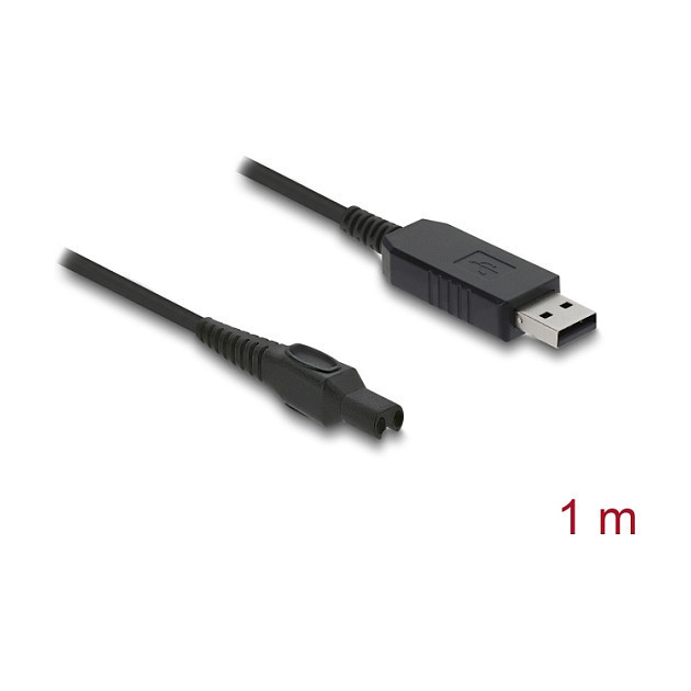 "DeLOCK USB Charging Cable 15 V for Electric Shavers compatible with Philips OneBlade Pro 360 HQ7 HQ8 HQ9 series - shaver charger replacement cable 1 m. Cable length: 1 m, Connector 1: USB A, Connector 2: 2-pin"\n"This USB charging cable by Delock enables fast and safe charging of Philips OneBlade Pro 360 electric shavers. It is compatible with the HQ7, HQ8 and HQ9 series and serves as a reliable replacement for defective or lost original charging cables.
