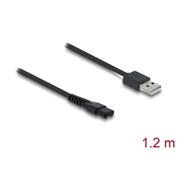 "DeLOCK USB Charging Cable 5 V for Electric Shavers compatible with MANSCAPED 2.0 / 3.0 series - shaver charger replacement cable 1.2 m. Cable length: 1.2 m, Connector 1: USB A, Connector 2: 2-pin"\n"This USB charging cable by Delock enables fast and safe charging of MANSCAPED electric shavers. It is compatible with the 2.0 and 3.0 series and serves as a reliable replacement for defective or lost original charging cables.