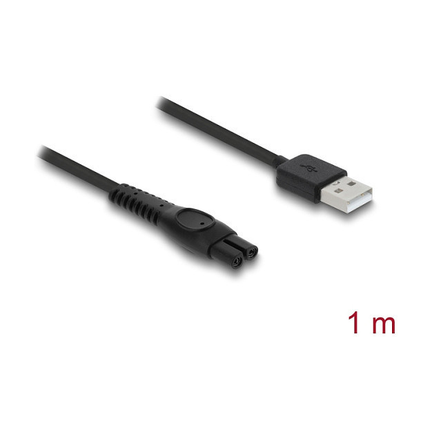 "DeLOCK USB Charging Cable 5 V for Electric Shavers compatible with Philips QP2724, QP2834, QP1924, MG9520 series - shaver charger replacement cable 1 m. Cable length: 1 m, Connector 1: USB A, Connector 2: 2-pin"\n"This USB charging cable by Delock enables fast and safe charging of Philips and Multigroomer electric shavers. It is compatible with the QP2724, QP2834, QP1924 and MG9520 series and serves as a reliable replacement for defective or lost original charging cables.
