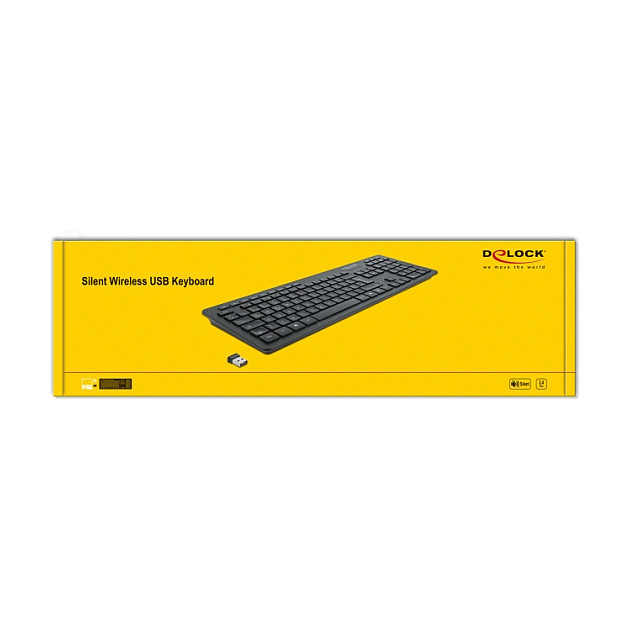 "DeLOCK 12004. Keyboard form factor: Full-size (100%). Keyboard style: Straight. Connectivity technology: Wired, Device interface: USB, Keyboard layout: QWERTZ, Recommended usage: Home. Product colour: Black"\n"This wireless USB keyboard by Delock with different multimedia keys brings silence into every working environment. Whether e.g. in an open plan office or at home, the Delock keyboard supports, due to its silent keys, noiseless and pleasant working on the computer. Also the click feeling of this keyboard does not change, despite its reduced click sound.