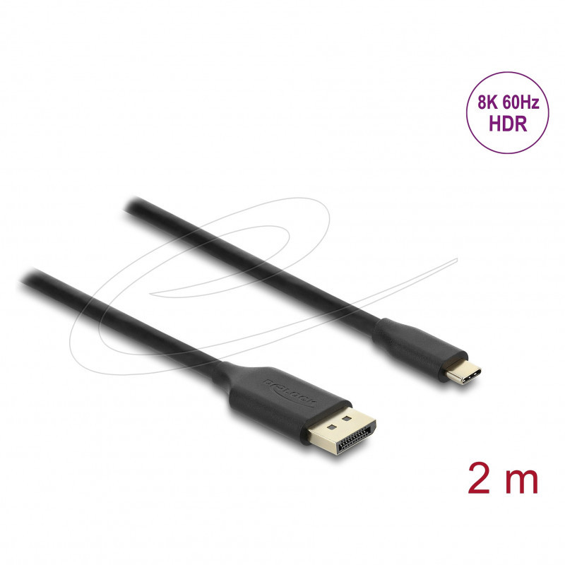 Delock USB Type-C™ zu DisplayPort Kabel (DP Alt Mode) 8K 60 Hz mit HDR Funktion 2 m schwarz