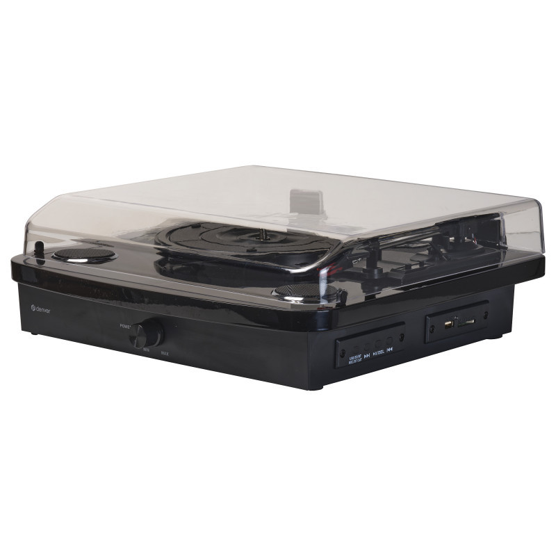"Denver VPL-230B. Operation: Semi Automatic, Product colour: Black, Housing material: Plastic, Wood. USB connector type: USB Type-A. RMS rated power: 2 W. Power supply type: DC. Width: 376 mm, Depth: 370 mm, Height: 125 mm"\n"Retro Turntable