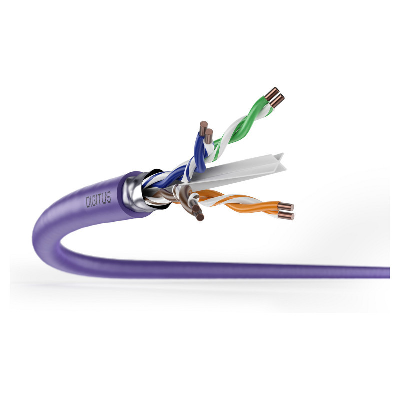 "Digitus CAT 6 F/UTP installation cable, 305 m, simplex, Eca. Cable length: 305 m, Cable standard: Cat6, Cable shielding: F/UTP (FTP), Product colour: Violet"\n"Future-oriented standards and high-end quality for your network.