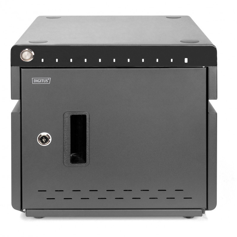 "Digitus Mobile Desktop Charging Cabinet for 10 Notebooks/Tablets up to 13inch, UV-C, USB-C. Type: Portable device management case, Product colour: Black, Placement: Table. Supported portable devices: Laptop, Tablet, Device connectors supported: USB Type-C, Maximum screen size: 35.6 cm (14""). AC input voltage: 110 - 220 V, AC input frequency: 50 - 60 Hz, Input current: 16 A. Width: 360 mm, Depth: 370 mm, Height: 345 mm. Cables included: AC"\n"The ideal solution for sterile storage and charging your portable devices via USB-C™ connections.