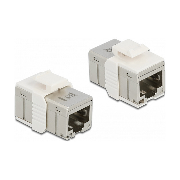 - Transparent red colored plug with metal shielding for easy identification of category 6 (250 Mhz)
