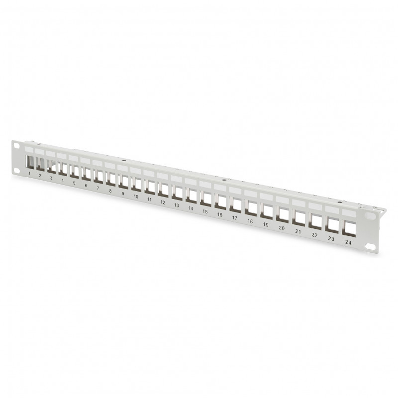"Digitus Modular patch panel, 24-port, equipped with 24x DN-93615. Connector(s): RJ-45, Cable types supported: Cat6a. Mounting: Rack mounting, Rack capacity: 1U, Product colour: Grey. Certification: EN 10 130(1991), BS 1449, NFA 36/401, DIN 1623, UNI 5866, UNE 36-086, SIS, JIS G 3141, ASTM, SAE,.... Width: 483 mm"\n"- All-in-one convenience - Simplifies purchasing and inventory by combining patch panel and keystones in a single, ready-to-install package.