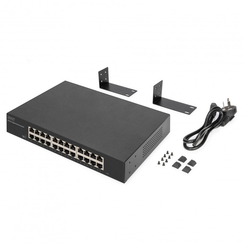 "Digitus 24-port Gigabit switch, 19-inch, unmanaged. Switch type: Unmanaged. Basic switching RJ-45 Ethernet ports type: Gigabit Ethernet (10/100/1000), Basic switching RJ-45 Ethernet ports quantity: 24. MAC address table: 8000 entries, Switching capacity: 48 Gbit/s. Networking standards: IEEE 802.3, IEEE 802.3ab, IEEE 802.3i, IEEE 802.3u, IEEE 802.3x. Power connector: AC-in jack. Rack mounting"\n"The DN-80113-2 24 port unmanaged switch is the ideal choice for companies looking for a reliable, high-performance network solution with advanced features and robust security.