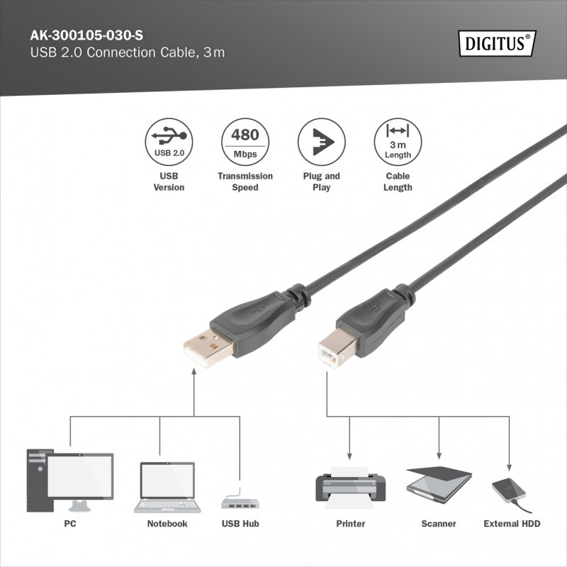 Digitus USB 2.0 Connection Cable | AK-300105-030-S