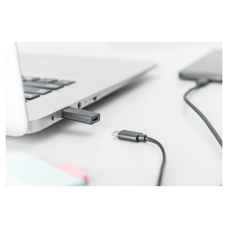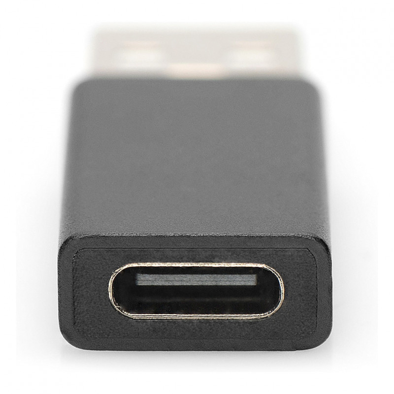 "Digitus USB-C adapter, USB A - USB-C. Connector 1: USB A, Connector 2: USB-C jack, Connector contacts plating: Nickel. Product colour: Black"\n"Connect USB-C devices with a USB A port - Continue to use your devices with a USB A port