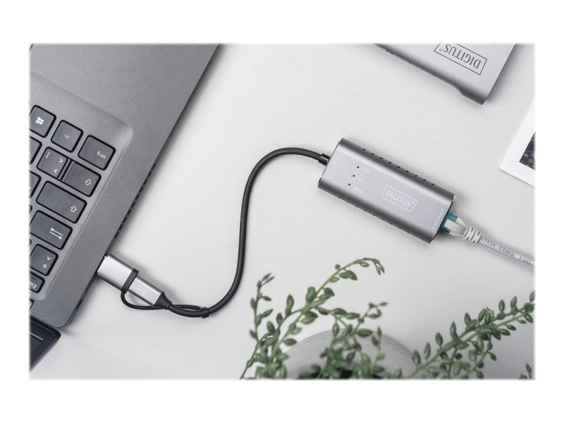 Digitus USB Type-C Gigabit Ethernet Adapter 2.5G, USB-C + USB A (USB3.1/3.0) | DN-3028 | USB3.0/USB C 3.1 to 2.5G Ethernet Adapter