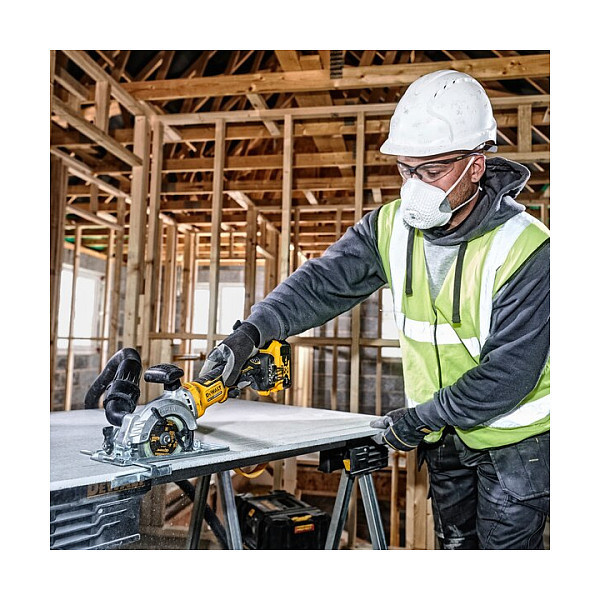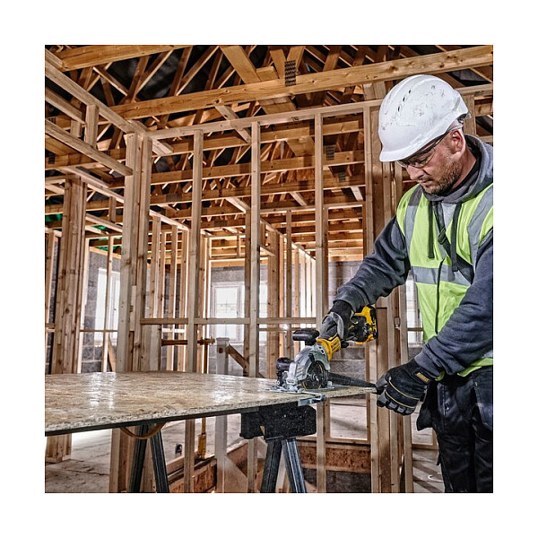 "DeWALT DCS571NT-XJ. Suitable for materials: Wood, Product colour: Yellow, Motor type: Brushless. Blade diameter: 11.5 cm, Idle speed (max): 4500 RPM, Cutting depth (90º): 3.8 cm. Power source: Battery, Output power: 750 W"\n"24 tooth TCT tipped 115 mm diameter blade allows for efficient run-time and fast, smooth cutting/finish