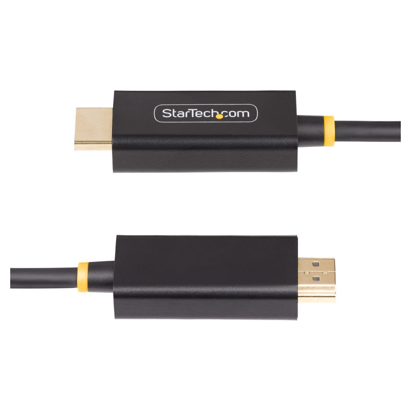 "StarTech.com 9.8ft (3m) DisplayPort to HDMI Adapter Cable, 4K 60Hz with HDR, DP to HDMI 2.0b, Active Video Converter, DisplayPort Desktop to HDMI Monitor. Cable length: 3 m, Connector 1: DisplayPort, Connector 2: HDMI Type A (Standard). Compliance certificates: RoHS. Cable diameter: 5 mm, Weight: 133 g. Package width: 170 mm, Package depth: 200 mm, Package height: 10 mm. Quantity per pack: 1 pc(s)"\n"Connect a DisplayPort source to an HDMI display up to 9.8ft (3m) away, with support for up to 4K 60Hz HDR video