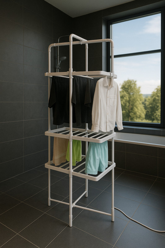Dual Functionality: Can be used both as a heated dryer or as a standard drying rack with no power required; Space-Saving Design: Perfect for apartments and small spaces - folds flat to only 9 cm thickness; Fast Drying: 30 aluminum heating elements significantly reduce drying time compared to air-drying; Durable - Lightweight: Made from lightweight aluminum and solid plastic; easy to move and set up; Floor-Friendly: Non-slip plastic feet protect your floors from scratches and damage. |