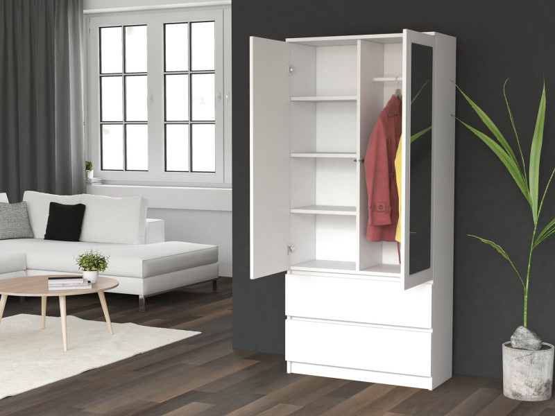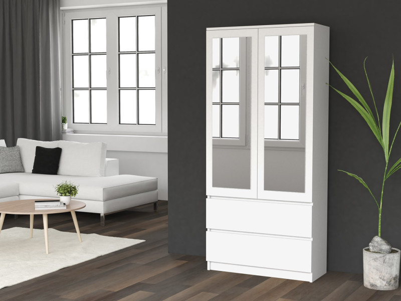 Topeshop SS-90 BIEL LUSTRO miegamojo drabužių / sieninė spinta 5 spintos 2 durys Balta Drabužinė