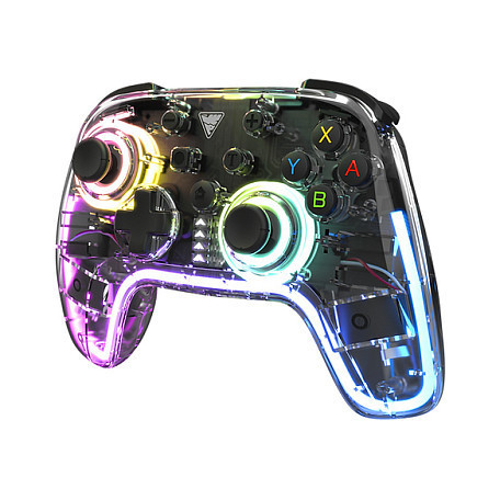 "Dragonshock Orion Glow. Device type: Gamepad, Gaming platforms supported: Nintendo Switch, Gaming control function buttons: Back button, D-pad, Home button, Reset button, Turbo button. Connectivity technology: Wireless, Device interface: Bluetooth, USB connector type: USB Type-C. Product colour: Black, Cable length: 2 m. Power source: Battery, Battery type: Built-in, Battery technology: Lithium-Ion (Li-Ion). Width: 157 mm, Depth: 108.6 mm, Height: 59.5 mm"\n