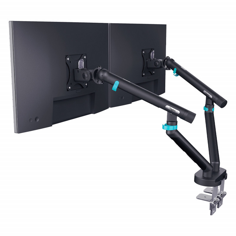 "Digitus Dual design monitor mount, 2x 35"", 2x 10 kg. Mounting: Clamp, Maximum weight capacity: 20 kg, Maximum screen size: 88.9 cm (35""), Minimum VESA mount: 75 x 75 mm, Maximum VESA mount: 100 x 100 mm. Height adjustment, Tilt angle range: -45 - 90°. Product colour: Black"\n"Fully mobile table mount for 2 screens up to 35"" with a maximum weight capacity of 2x 10 kg - suitable for flat screens as well as curved displays
