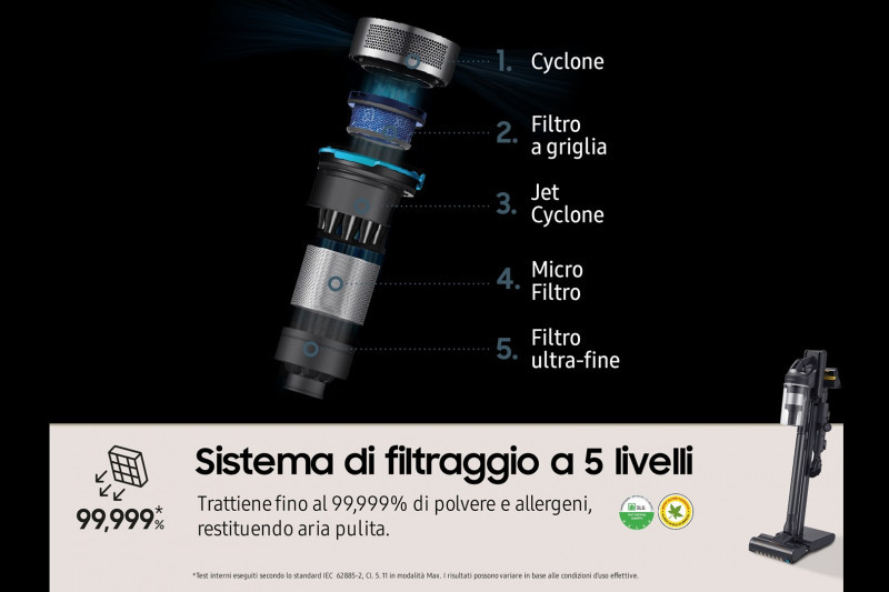Samsung VS20C9554TK Dulkių siurbliui šluotai Baterija Sausa Cikloninis Bemaišis 0,8 L 580 W Juoda