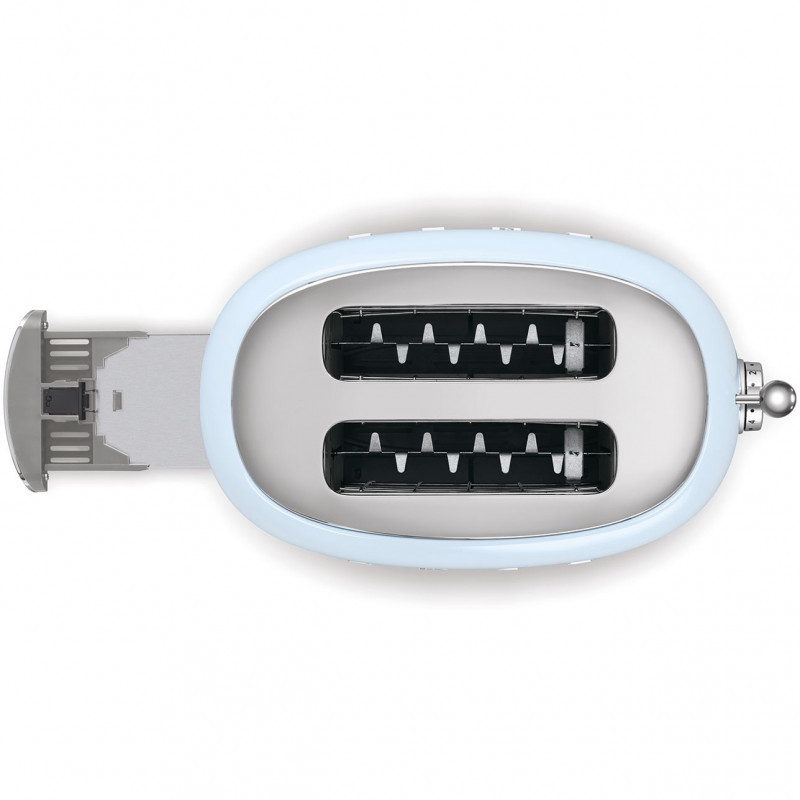 "Smeg 50's Style Toaster TSF01PBEU Pastel Blue. Number of slices: 2 slice(s), Product colour: Blue, Housing material: Steel. Power: 950 W, AC input voltage: 220 - 240 V, AC input frequency: 50 - 60 Hz. Cord length: 1 m, Width: 310 mm, Depth: 195 mm. Country of origin: China. Pallet gross weight: 270 kg, Layers per pallet: 7 pc(s), Products per pallet layer: 10 pc(s)"\n"Smeg's iconic retro design offers a pop of colour and a premium enamelled finish. Whether you're preparing breakfast before the school run, or a luxurious breakfast in bed, the Smeg TSF01 two slot toaster has got it covered. This two slice toaster is perfect those who like to make a statement in the kitchen, but can also handle warming pastries, bagels, and toasting treats!
