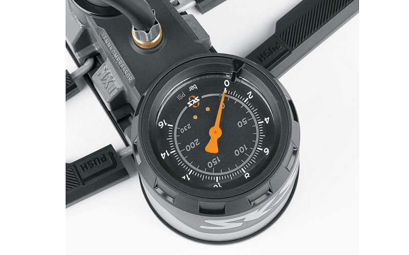230 psi - 16 bar, manometras, universalus antgalis, 730 mm ilgio, plieninis vamzdis, aliuminis pagrindas, medinė rankena