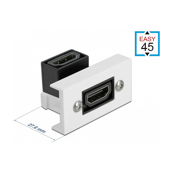 "DeLOCK Easy 45 HDMI Module angled 90° 22.5 x 45 mm. Product colour: Black. Width: 45 mm, Depth: 22.5 mm, Height: 27.6 mm"\n"This Easy 45 module by Delock is designed to provide a HDMI female port. The simple snap-in mechanism ensures that the module is firmly in place and can be easily removed if necessary.